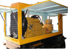 盖州柴油发电机组/移动柴油发电机组设计独具创新,机动性高、重心低、制动安全、制造精良、外形美观。 盖州拖车车架采用槽梁焊接成框架结构,节点选择合理、强度高、刚性好;同时装有钢板弹簧悬架结构;拖车采用高度可调节插销式牵引架,适用于各种高度牵引车;采用圆形钢管焊接直通式车轴,结构紧凑,安全可靠;车架四角设有机械式支撑装置,配备惯性行车制动、驻车制动和脱离应急制动,确保机组在各种状况下的安全;车架前端设有支撑轮,具备承受机组垂直载荷的功能的同时还具备导向功能;整车配备转向和刹车指示灯,同时装有尾灯标准插头